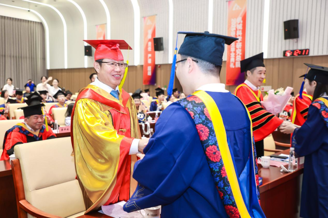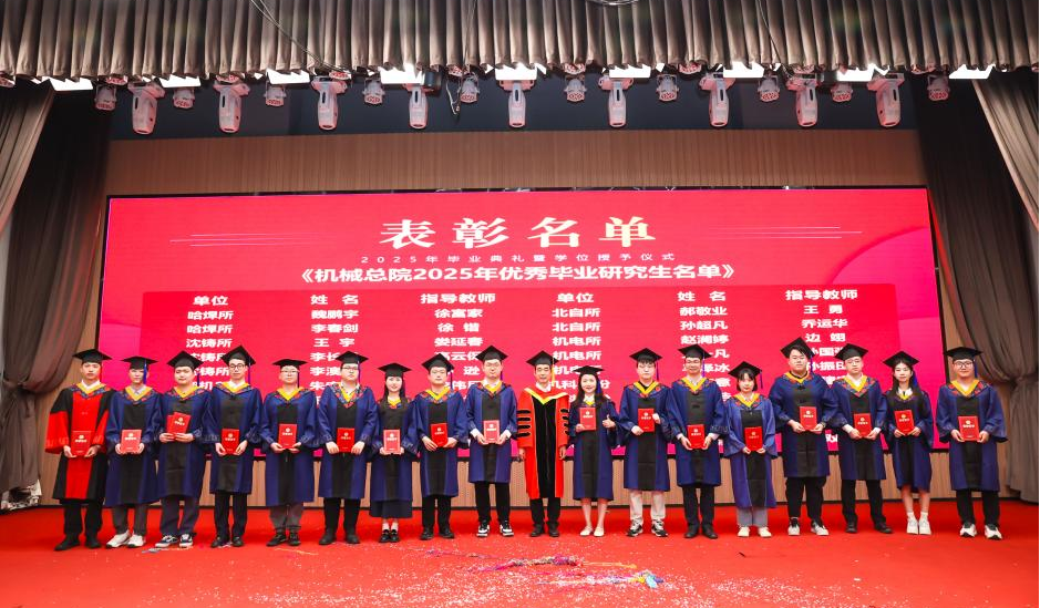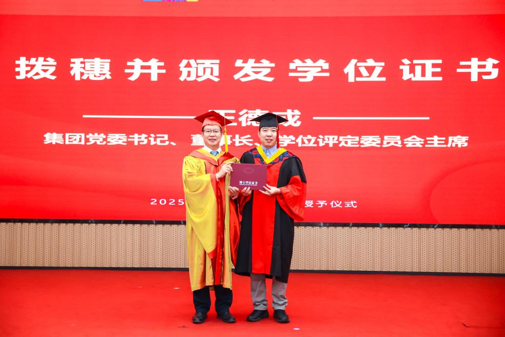 李愛國宣讀了《機(jī)械科學(xué)研究總院2025屆畢業(yè)生學(xué)位授予決定》,王德成為每位畢業(yè)生撥穗正冠并頒發(fā)學(xué)位證書。