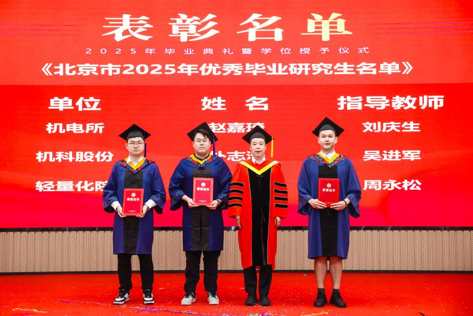 研究生院傾力打造的智慧課程虛擬AI助教“科小研同學(xué)”作為典禮第二主持人登上舞臺,現(xiàn)場宣讀了2025年北京市優(yōu)秀畢業(yè)研究生、機(jī)械總院優(yōu)秀畢業(yè)研究生、優(yōu)秀學(xué)位論文、科技創(chuàng)新成果獎(jiǎng)獲得者名單,孟祥宇、李玉鑫、王宇、姜超分別向獲獎(jiǎng)同學(xué)們頒發(fā)榮譽(yù)證書。